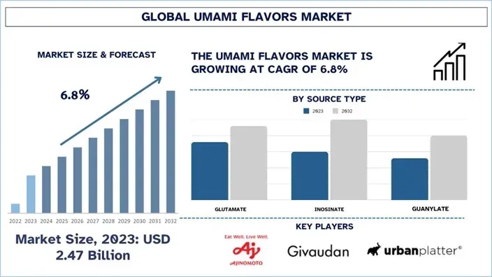 According to the Univdatos, increasing consumer demand for savory, rich-tasting foods and the growing use of natural flavor enhancers like MSG, yeast extracts, and fermented ingredients are driving the growth of this market worldwide. As per their “Umami flavors Market” report, the global Market was valued at USD 2.47 billion in 2023, growing at a CAGR of about 6.8% during the forecast period from 2024 - 2032 to reach USD billion by 2032.