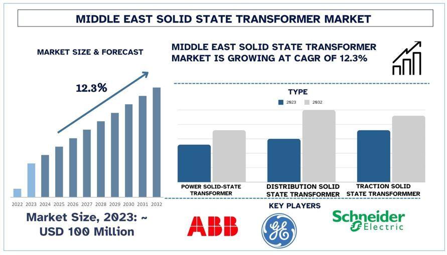 The Middle East solid state transformer Market was valued at USD 100 Million in 2023 and is expected to grow at a strong CAGR of around 12.3% during the forecast period (2024-2032).