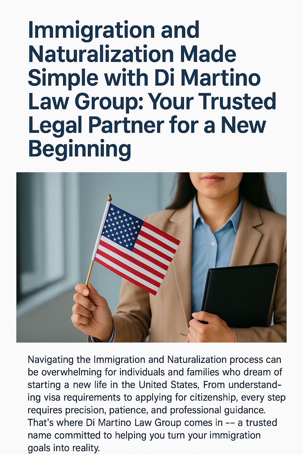 Navigating the Immigration and Naturalization process can be overwhelming for individuals and families who dream of starting a new life in the United States. From understanding visa requirements to applying for citizenship, every step requires precision, patience, and professional guidance. That’s where Di Martino Law Group comes in — a trusted name committed to helping you turn your immigration goals into reality.