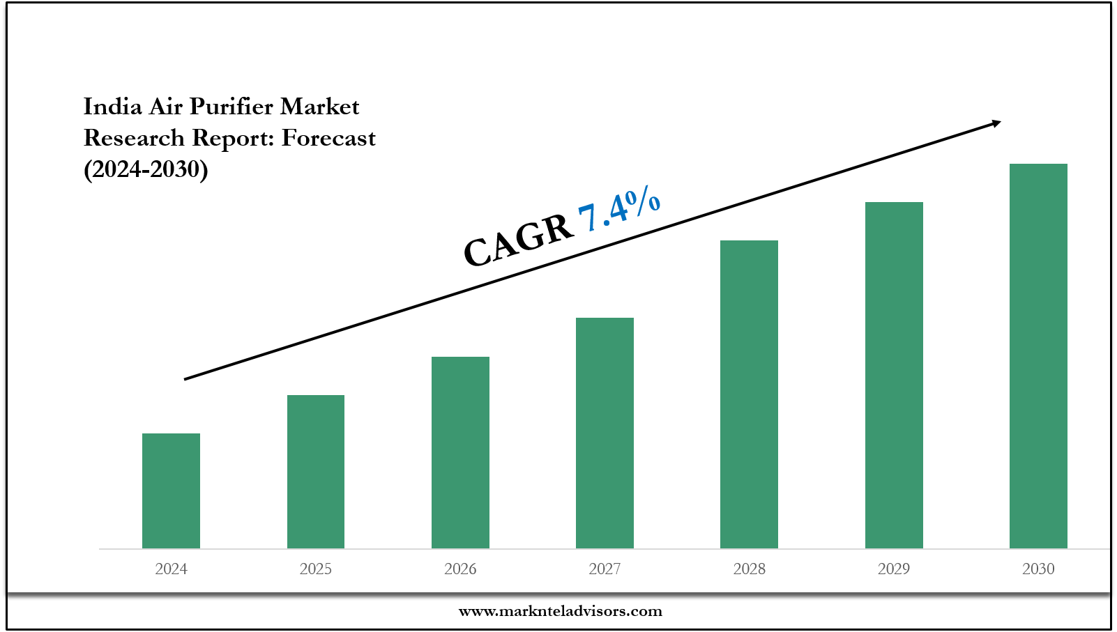 The India Air Purifier Market size is projected to grow at a CAGR of around 7.4% during the forecast period, i.e., 2024-30.