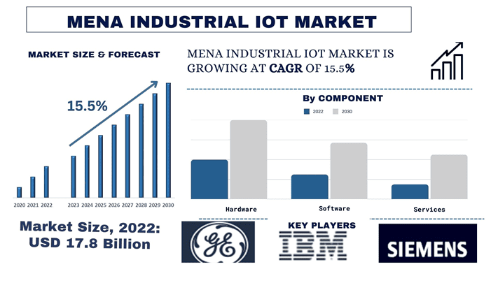 The MENA Industrial IoT Market was valued at 17.8 billion in 2022 and is expected to grow at a steady rate of around 15.5 % in the forecasted period (2023-2030).