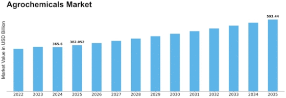 The agrochemicals market continues to evolve across multiple dimensions — from product types to crop segments to geography. According to MRFR, the global agrochemicals market was valued at USD 365.6 billion in 2024 and is scheduled to grow to USD 593.44 billion by 2035, with an annual growth rate of 4.5%.