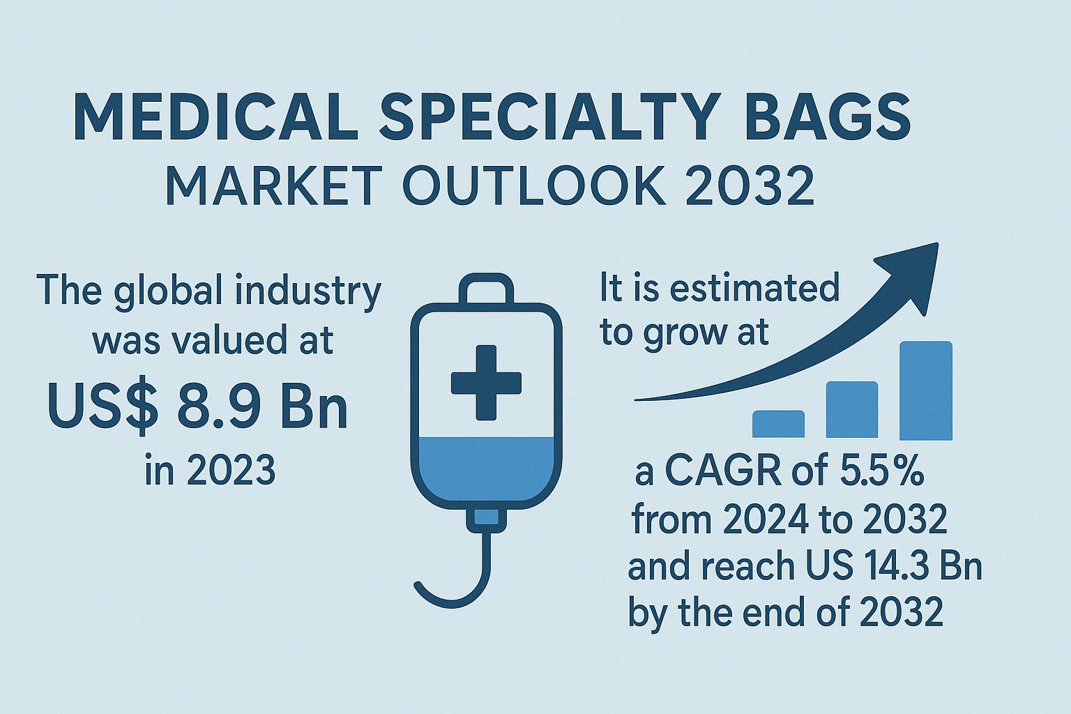 The global Medical Specialty Bags Market is entering a phase of steady and structured growth, propelled by rising healthcare needs, technological advancements, and an expanding geriatric population. Valued at US$ 8.9 Bn in 2023, the industry is projected to achieve US$ 14.3 Bn by 2032, recording a CAGR of 5.5% from 2024 to 2032. Medical specialty bags, known for their sterility, safety, and convenience, have become indispensable across hospitals, clinics, ambulatory care centers, and home healthcare environments. As chronic diseases continue to surge and awareness about medical hygiene strengthens, the demand for specialized fluid storage and transport solutions is expected to accelerate globally.
