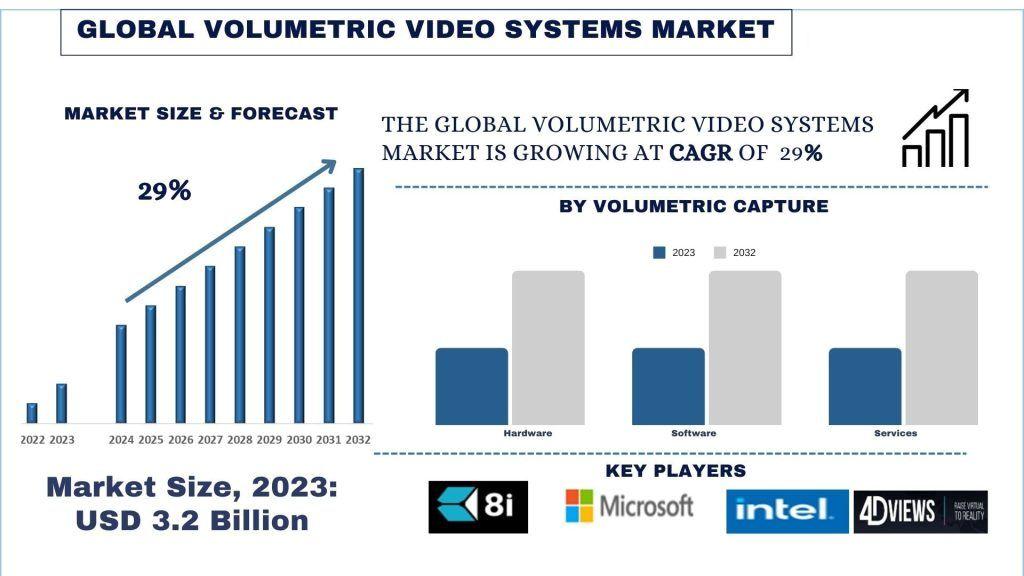 According to a new report by UnivDatos, Volumetric Video Systems Market is expected to reach USD Billion in 2032 by growing at a CAGR of 29%.