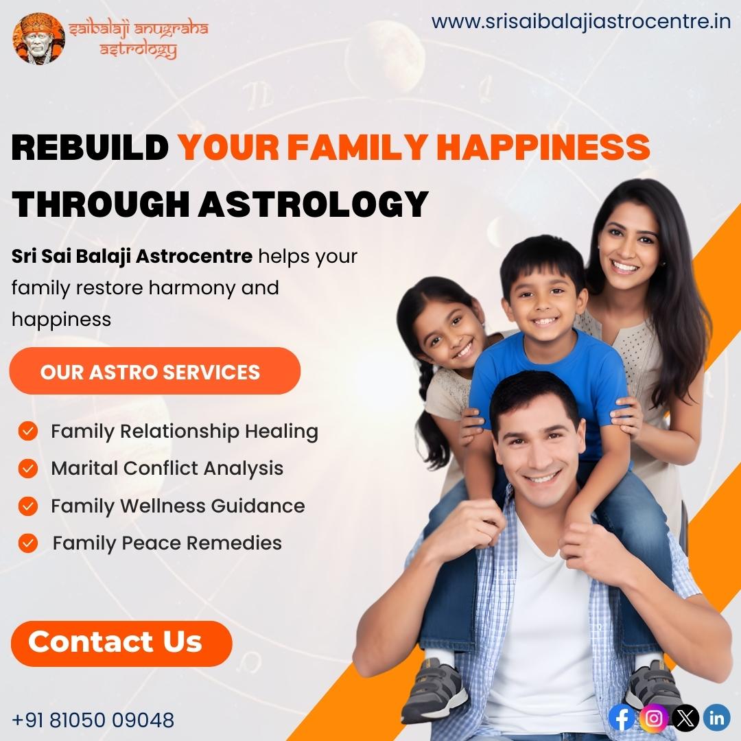 Family problems can disturb mental peace and affect every area of life. Disputes between parents and children, siblings, or in-laws often arise due to unresolved karmic influences. Sri Sai Balaji Astrocentre helps families identify these influences and apply remedies that promote understanding and unity.