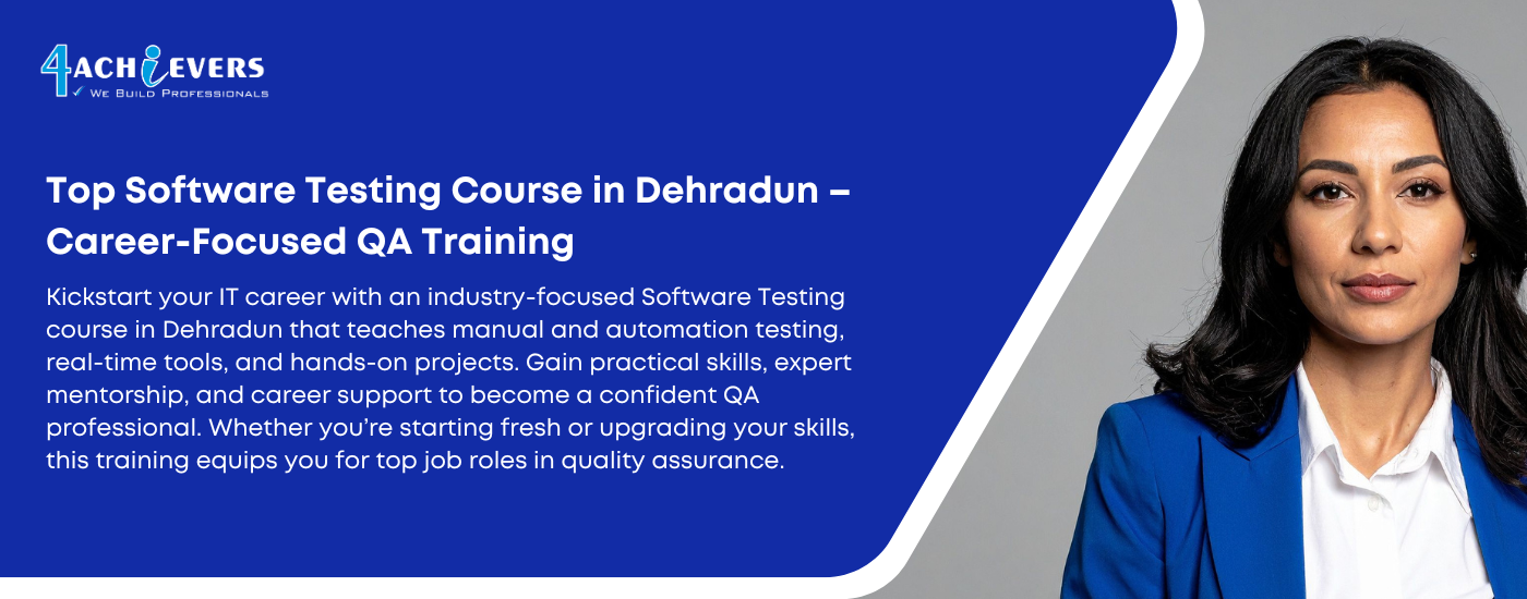 Kickstart your IT career with an industry-focused Software Testing course in Dehradun that teaches manual and automation testing, real-time tools, and hands-on projects. Gain practical skills, expert mentorship, and career support to become a confident QA professional. Whether you’re starting fresh or upgrading your skills, this training equips you for top job roles in quality assurance. Learn more and enroll here: <a href="https://4achievers.com/software-testing-training-in-dehradun" target="_blank" rel="noopener">Software Testing Training in Dehradun</a> to boost your career growth!