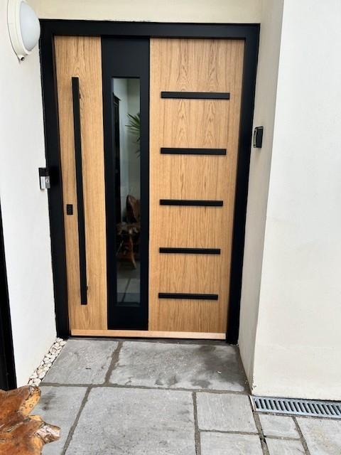 Bespoke doors reflect individual style and property requirements. Detailed joinery, decorative inlays, and integrated logo designs allow doors to serve as a statement feature. Bespoke production ensures every measurement, finish, and functional element aligns perfectly with a homeowner’s vision. Custom glazing options, including frosted or decorative glass, allow personalization while maintaining security and thermal efficiency.