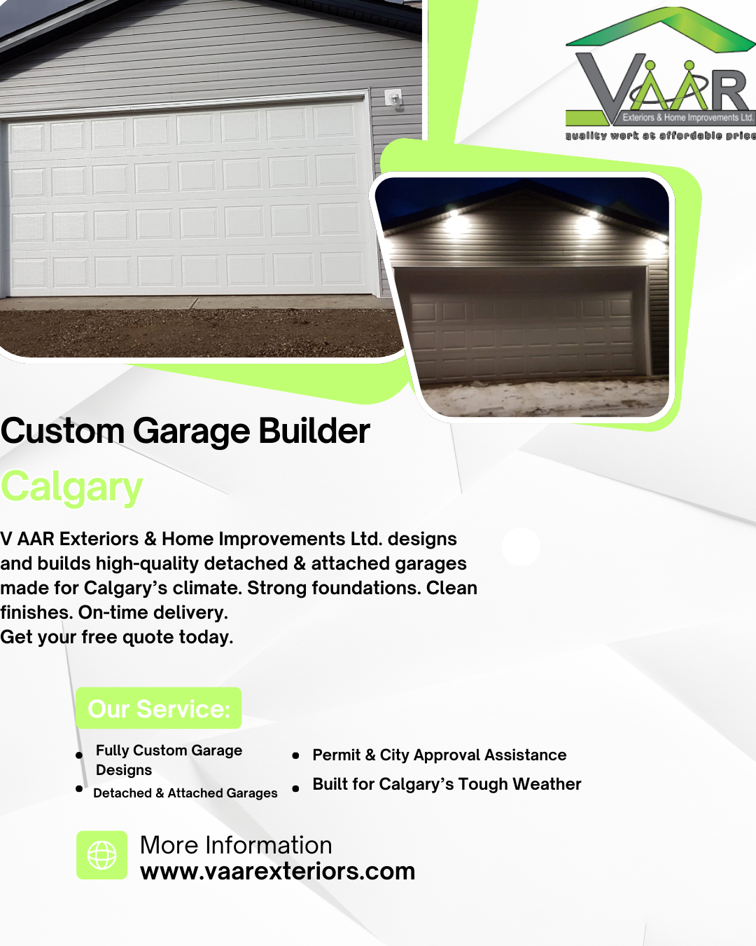 Garage Builder in Calgary – V AAR Exteriors & Home Improvements Ltd