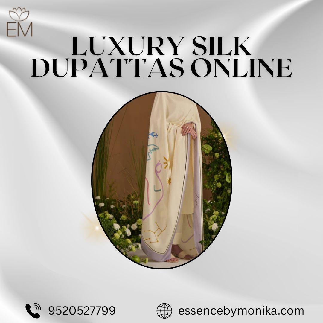 Discover the elegance of luxury silk dupattas online with the stunning range offered by Essence By Monika. Each dupatta is crafted with premium-quality silk, bringing a graceful touch to every outfit. This online collection showcases vibrant colors, traditional designs, and modern styles that suit every occasion. Whether you want to enhance your festive look or add charm to your daily wear, these dupattas deliver unmatched sophistication. Explore the finest craftsmanship, soft textures, and timeless appeal in every piece. Shop now and experience true luxury with beautifully designed silk dupattas that elevate your wardrobe effortlessly.