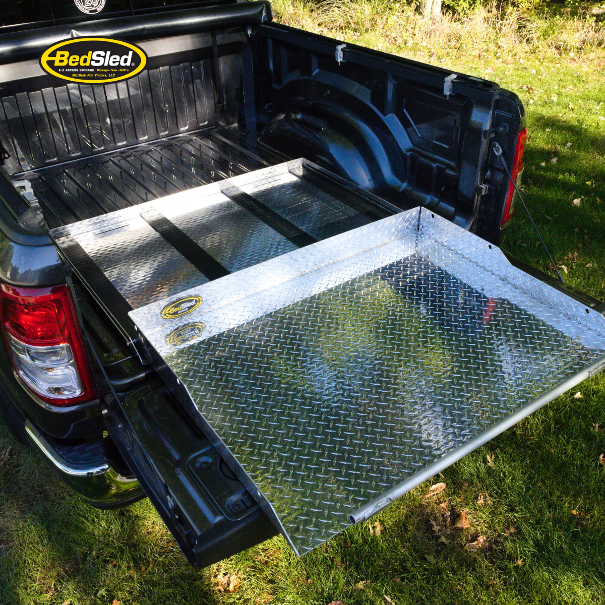The Black BedSled is a high-quality sliding cargo management system designed for truck owners seeking durability, convenience, and style. Its black powder-coated finish adds a rugged yet refined look while ensuring long-lasting performance. Built from heavy-duty 14-gauge steel, the BedSled offers exceptional strength and is designed to work with all pickup truck models, regardless of make model, or bed liner type. The smooth sliding track system allows for effortless loading and unloading, while the tailgate extension ensures maximum reach for easy cargo access. Additionally, it provides truck bed protection, preventing scratches, dents, and wear to keep your truck in top condition.