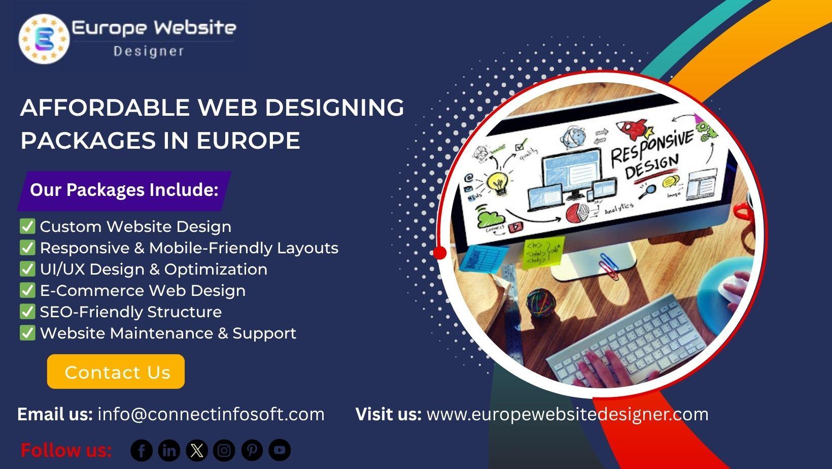 Affordable Web Designing Packages in Europe – Europe Website Designer Transform your online presence with affordable web design packages from Europe Website Designer. We provide creative, responsive, and high-quality web design solutions to suit every business needs and budget. Our expert designers create mobile-friendly, SEO-optimized, and aesthetically pleasing websites that engage visitors and drive results. Our affordable design packages guarantee that your website stands out in style, functionality and professional, whether you are a startup or redesigning your brand. Get in touch now to start your cosmic journey! Kindly message me for an in-depth conversation. Book a Free 30-minute consultation with our experts: https://calendly.com/connectinfosoft Please email us at info@connectinfosoft.com Visit us: https://www.europewebsitedesigner.com/ Please send us your Queries: https://www.connectinfosoft.com/lets-work-together/ Our Portfolio: https://www.connectinfosoft.com/works/ Tags: #AffordableWebDesignEurope #WebDesigningPackages #ResponsiveWebDesign #CreativeWebsiteDesign #ProfessionalWebDesigner #BusinessWebsiteSolutions #CustomWebDesign #EuropeWebsiteDesigner #UIUXDesign #WebsiteDevelopmentServices