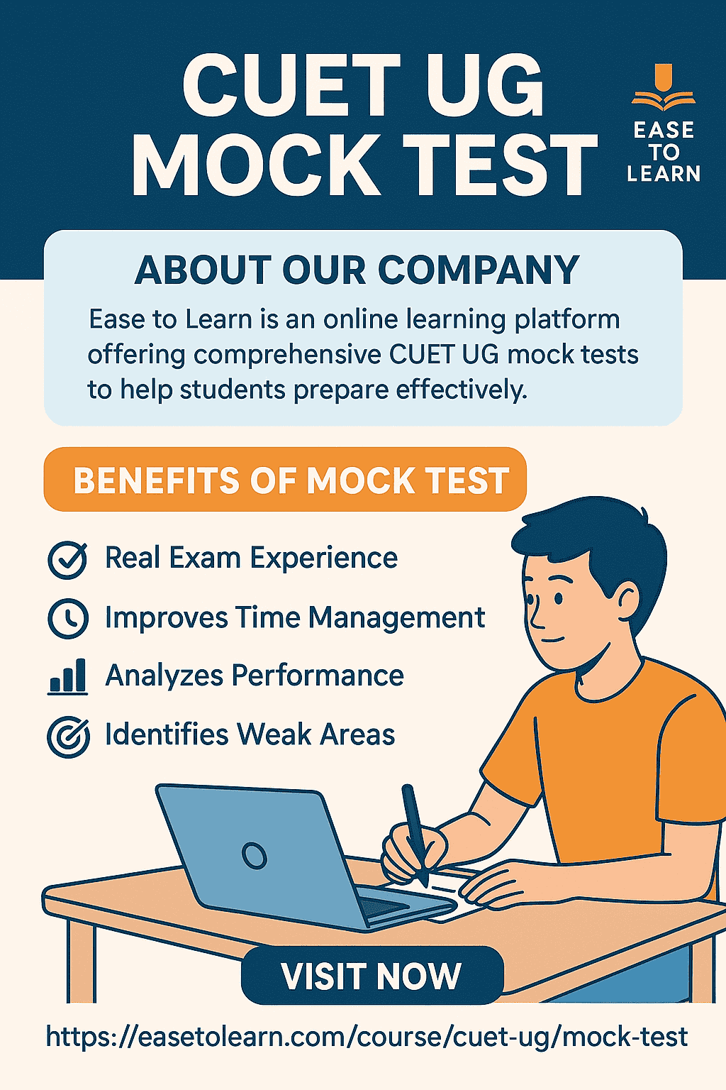 The CUET UG mock test is essential for students aiming to excel in the CUET entrance exam. A high-quality CUET UG mock test builds accuracy, improves speed, and strengthens exam strategies. EaseToLearn offers a smart, adaptive CUET UG mock test platform with chapter-wise tests, full-length papers, and performance analytics. Prepare confidently with EaseToLearn’s expertly designed CUET UG mock test series to maximize your CUET score.