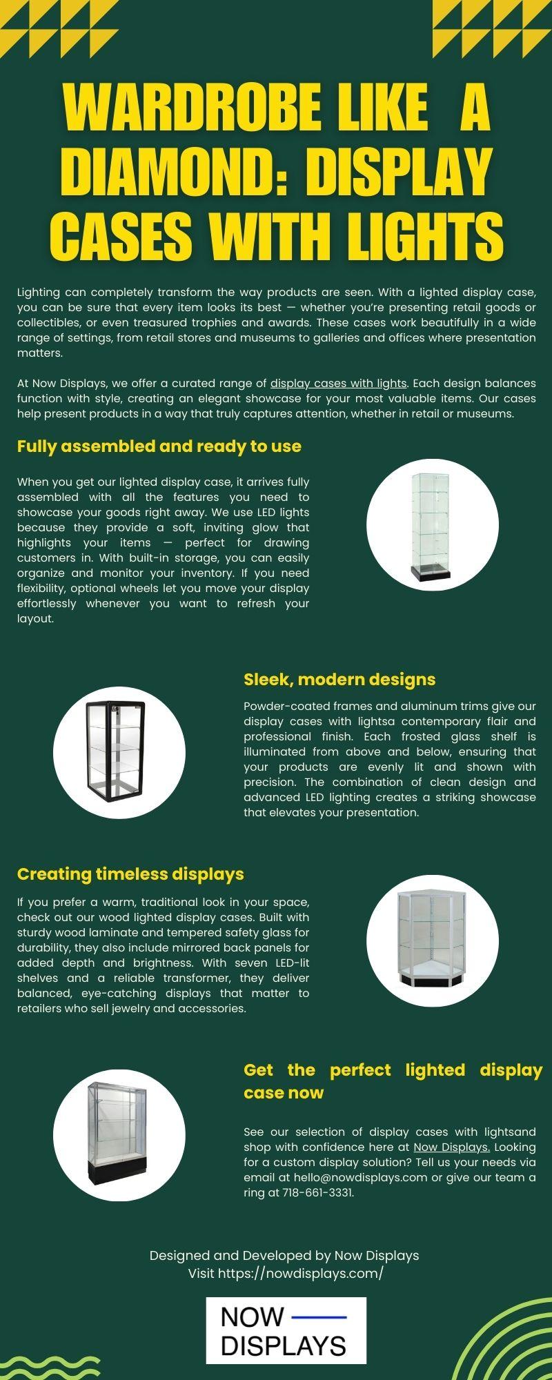 Wardrobe Like a Diamond: Display Cases with Lights Visit https://nowdisplays.com/collections/glass-showcase to know more.